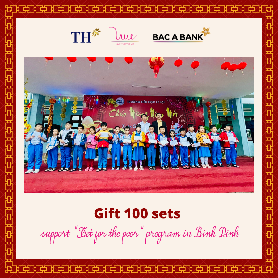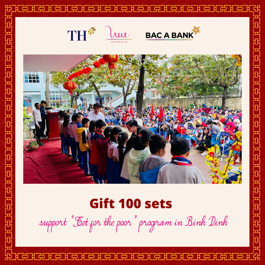 As part of the activities in response to the "Tet for the Poor" program 2024, For Vietnamese Stature Foundation (VSF), BAC A BANK, and TH Group continue to collaborate with local partners to donate meaningful Tet gifts with a total values reaching 60 million VND and 2,616 glasses of TH true MILK pure fresh milk.