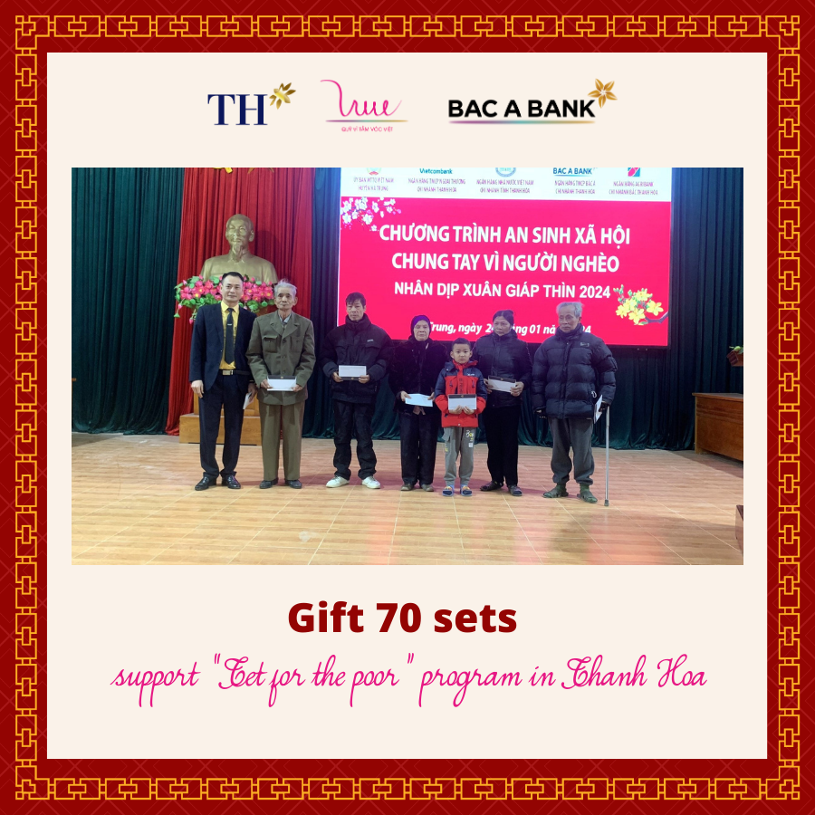 In the framework of activities to respond to the "Tet for the Poor" program in 2024, For Vietnamese Stature Foundation (VSF), BAC A BANK, and TH Group have coordinated with local partners to distribute meaningful Tet gifts.