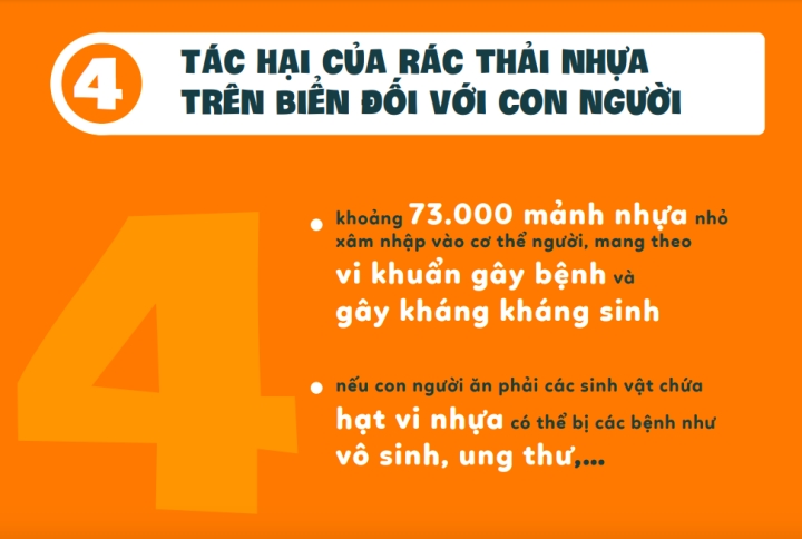 Some types of plastic waste are dissolved into microplastic particles and enter domestic water sources, or are absorbed by aquatic animals such as shrimp, crabs, and fish, and then consumed by humans. In the long run, it can lead to serious diseases such as cancer or lower immunity.