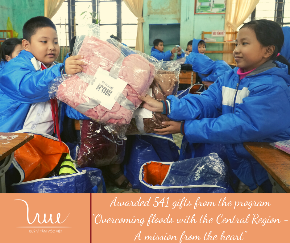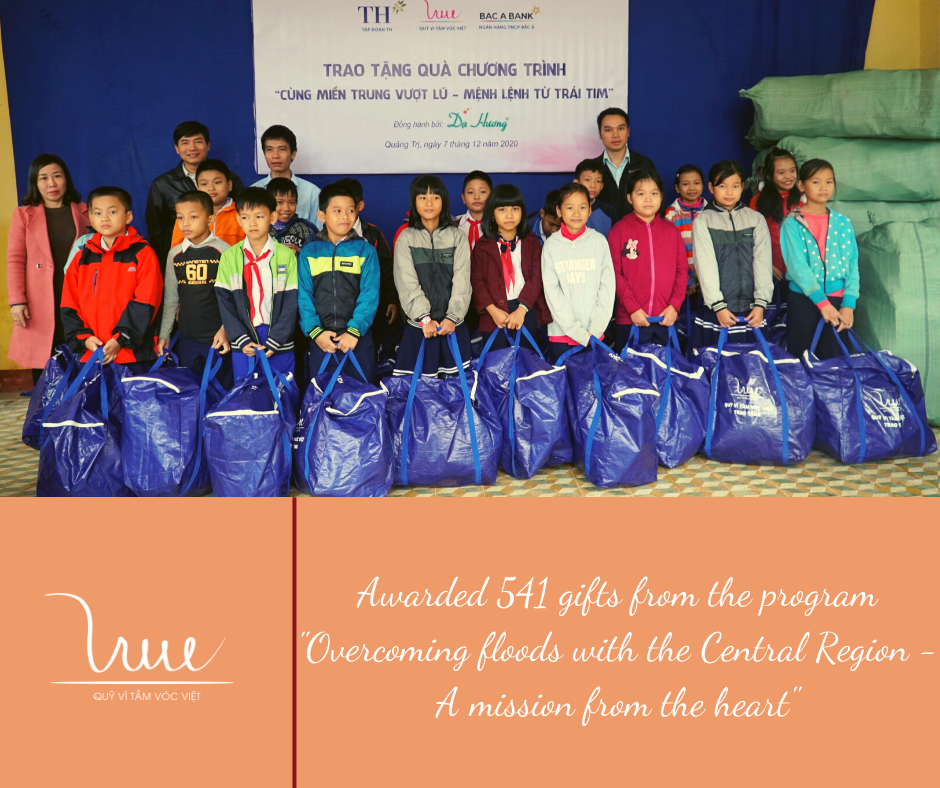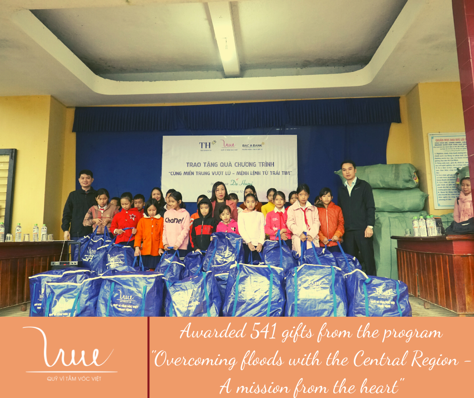 Accordingly, each gift package includes: 1 life jacket, 1 warm coat, 1 blanket, 1 set of personal hygiene and 1 set of school supplies. The program raised money from individual sponsors, employees of TH Group, Bac A Commercial Joint Stock Bank and gifts from Hoa Linh Pharmaceutical Company.