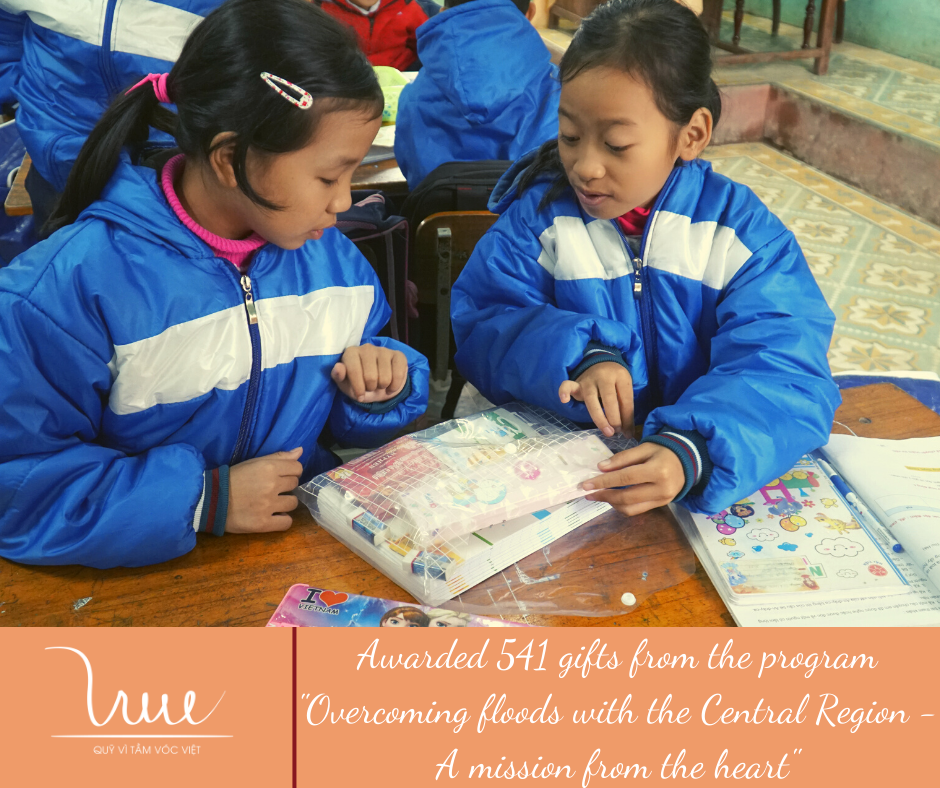 For Vietnamese Stature Foundation (VSF) cooperated with Tien Phong newspaper to award 541 gifts worth VND 700,000/set to students in Hai Hung Primary School - a floodplain area of Hai Lang district, Quang Tri province.