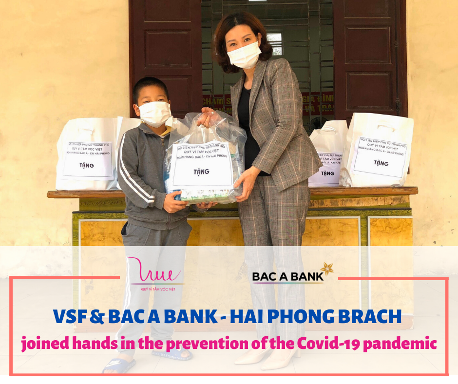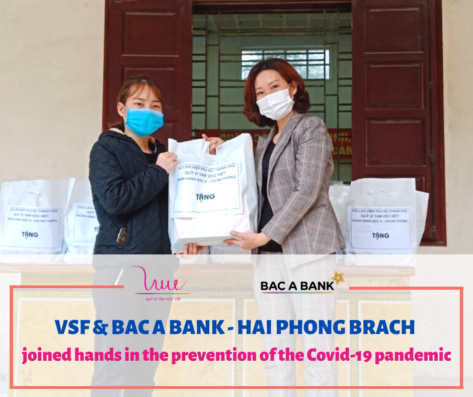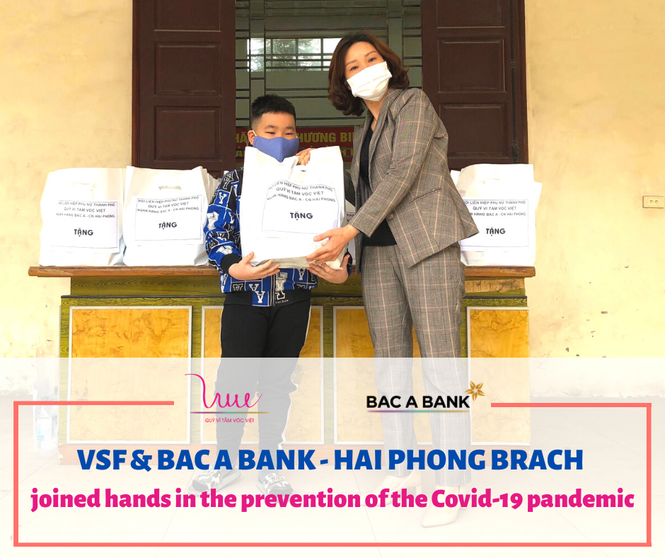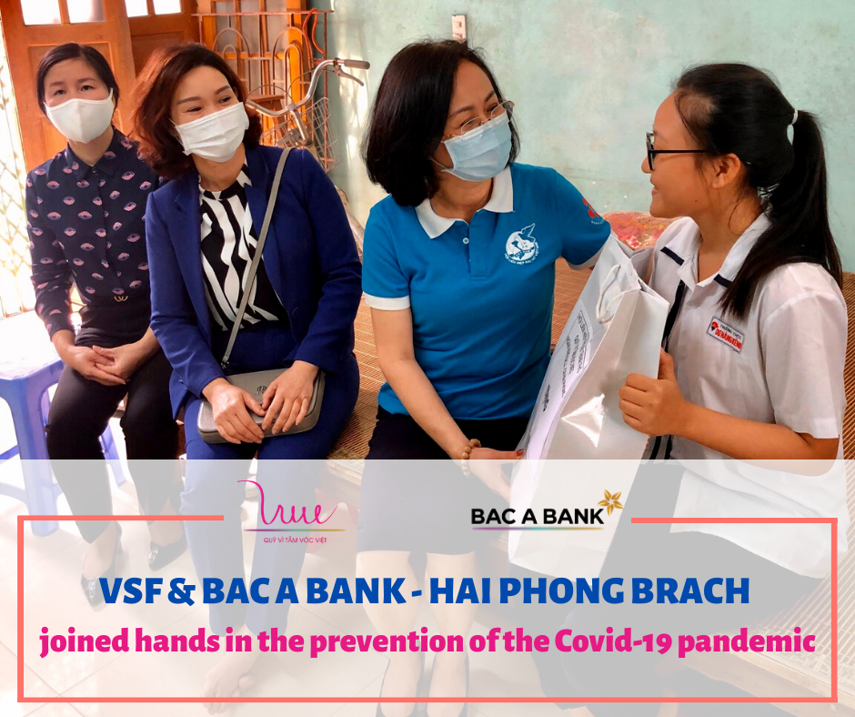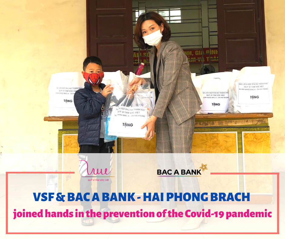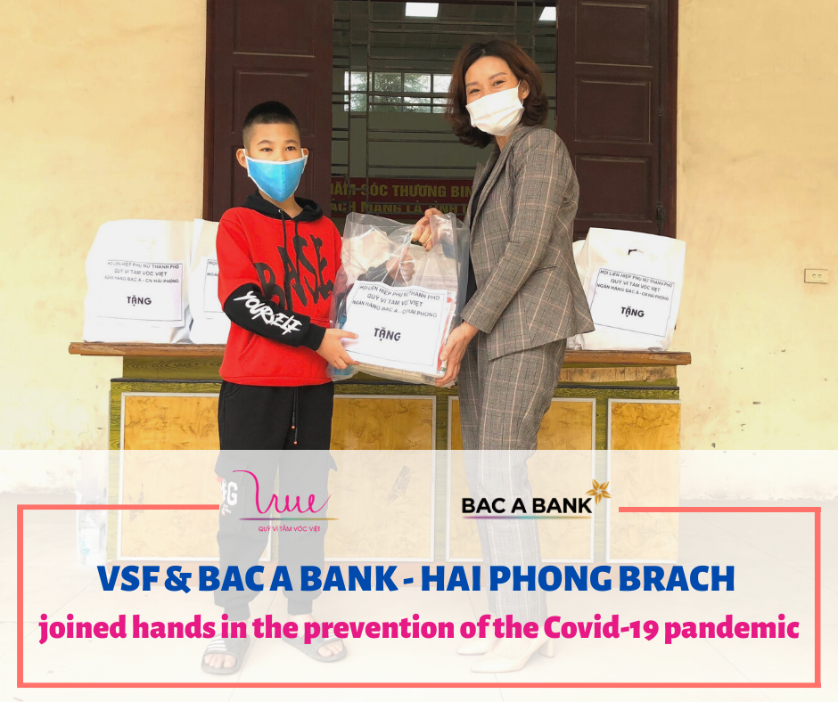 This activity is in the combatting Covid-19 program initiated by VSF. All gifts were mobilized from BAC A BANK Hai Phong branch, in which each gift set included: 5 cloth masks, 1 bottle of 300ml dry antiseptic solution, 2 bottles of 500ml antiseptic gargle and 16 glasses of fresh milk.