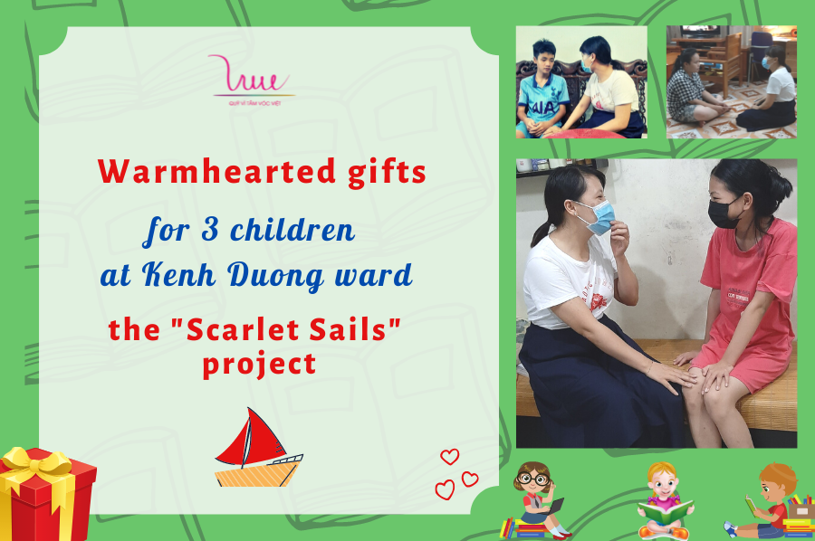 Together with T., two other children, N.H.H and D.M.V, have also been sponsored by the “Scarlet Sails” project since September 2021. Visiting the family of the two children, Ms. Thanh was not able to hide her emotion: “Seeing me, both of them were so eager to share about their new things they’ve got. H. has finally had a new desk after years of having to share the same wobbly desk with her sister. She showed me how she organized her new desk, leaving the most solemn place for her certificates. As for V., she has made a lot of progress in her studying. She and her mother no longer have to worry about monthly tuition and living expenses.”