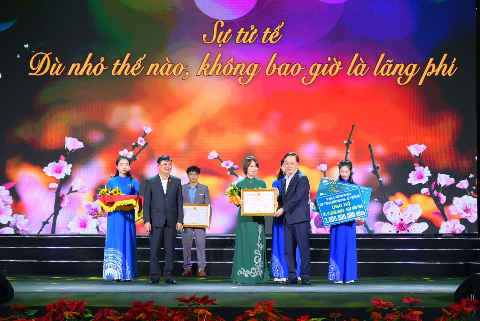Last night, on January 21, 2024, For Vietnamese Stature Foundation (VSF), TH Group, BAC A BANK, and Nghe An Sugar Company (NASU) donated 3 BILLION VND in the "Tet for the Poor - Spring 2024" program in Vinh City, Nghe An.