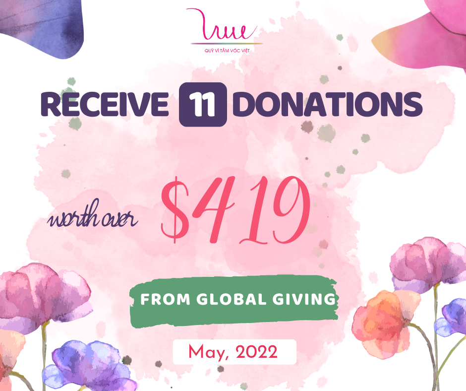 For Vietnamese Stature Foundation received 11 donations through Global Giving in May 2022