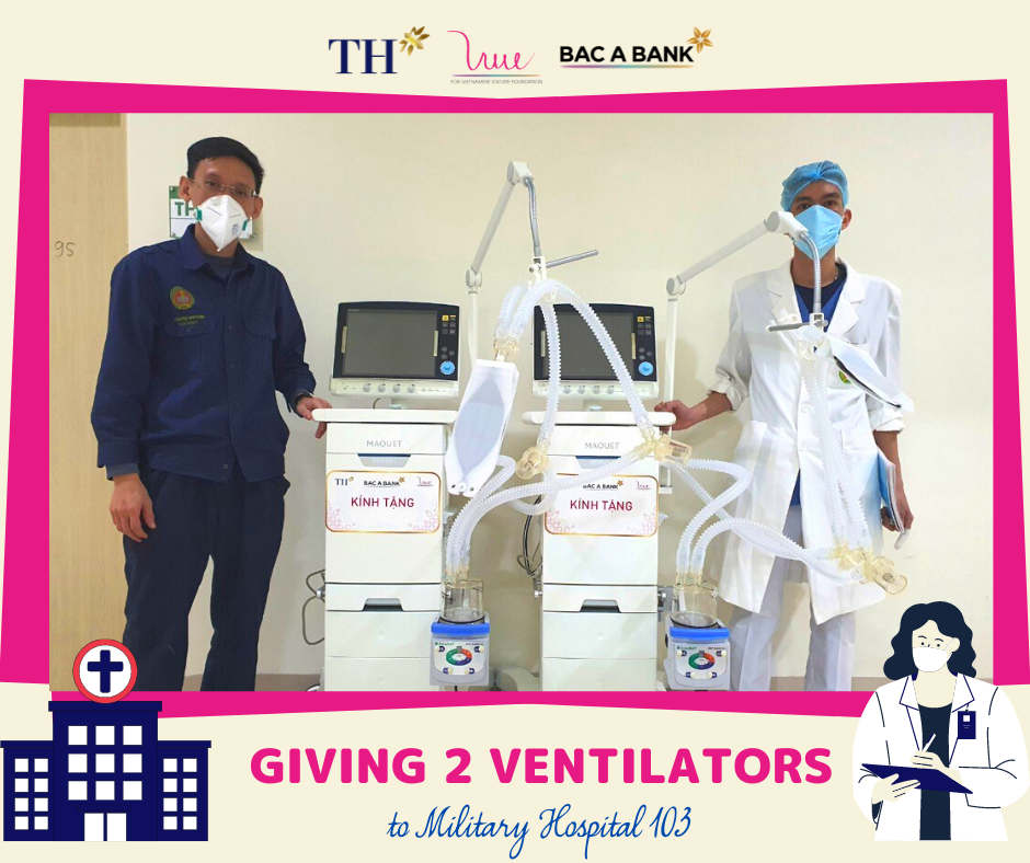 Continuing the journey to combat the Covid-19 pandemic, For Vietnamese Stature Foundation (VSF), TH Group, and BAC A BANK gave 2 ventilators imported from Sweden to Military Hospital 103 for the treatment of Covid-19 patients.