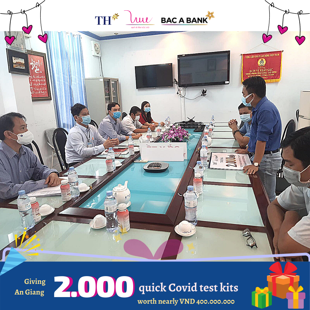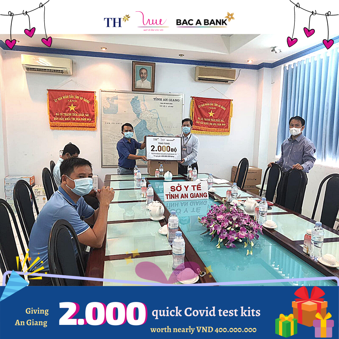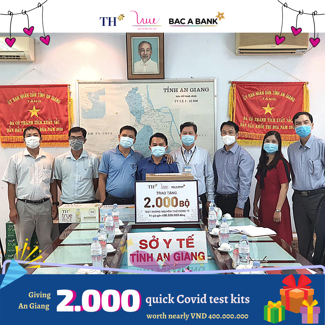 Accompanying with An Giang, this morning, TH Group and BAC A BANK, through For Vietnamese Stature Foundation, have given 2.000 Korean test kits to the People's Committee and Department of Health of An Giang for the COVID-19 prevention. The total value of the gift is nearly VND 400.000.000.