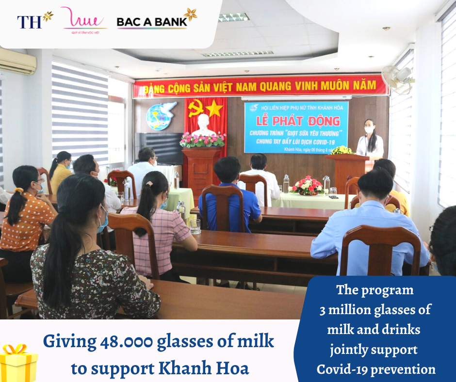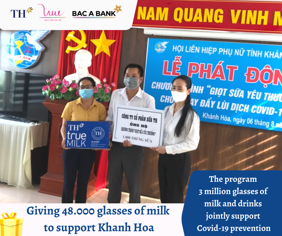 Responding to the launching ceremony of the program "Milk of love" of the Women's Union of Khanh Hoa province, in the afternoon of August 6th, 2021, For Vietnamese Stature Foundation (VSF), TH Group and BAC A BANK gave 48.000 glasses of milk to support the prevention activities in local areas.