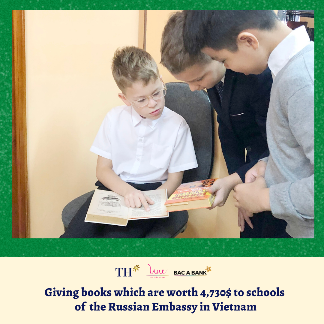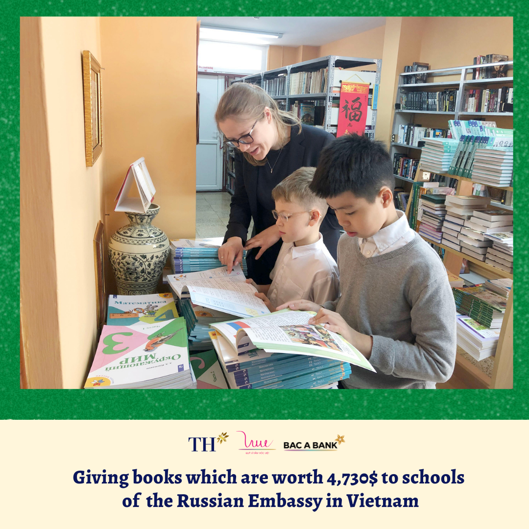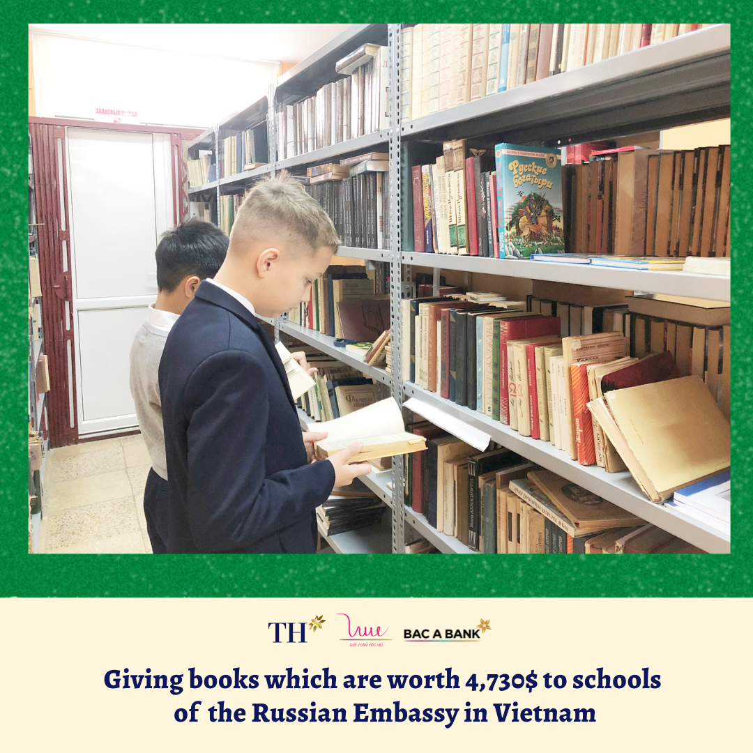 Due to the geographical distance between Russia and Vietnam, the addition of new books to serve teaching and learning at schools is difficult. Therefore, because of the proposal of the school parent association, TH Group and Bac A Bank through VSF decided to finance the school to buy books from Russia and transfer them back to Vietnam.
