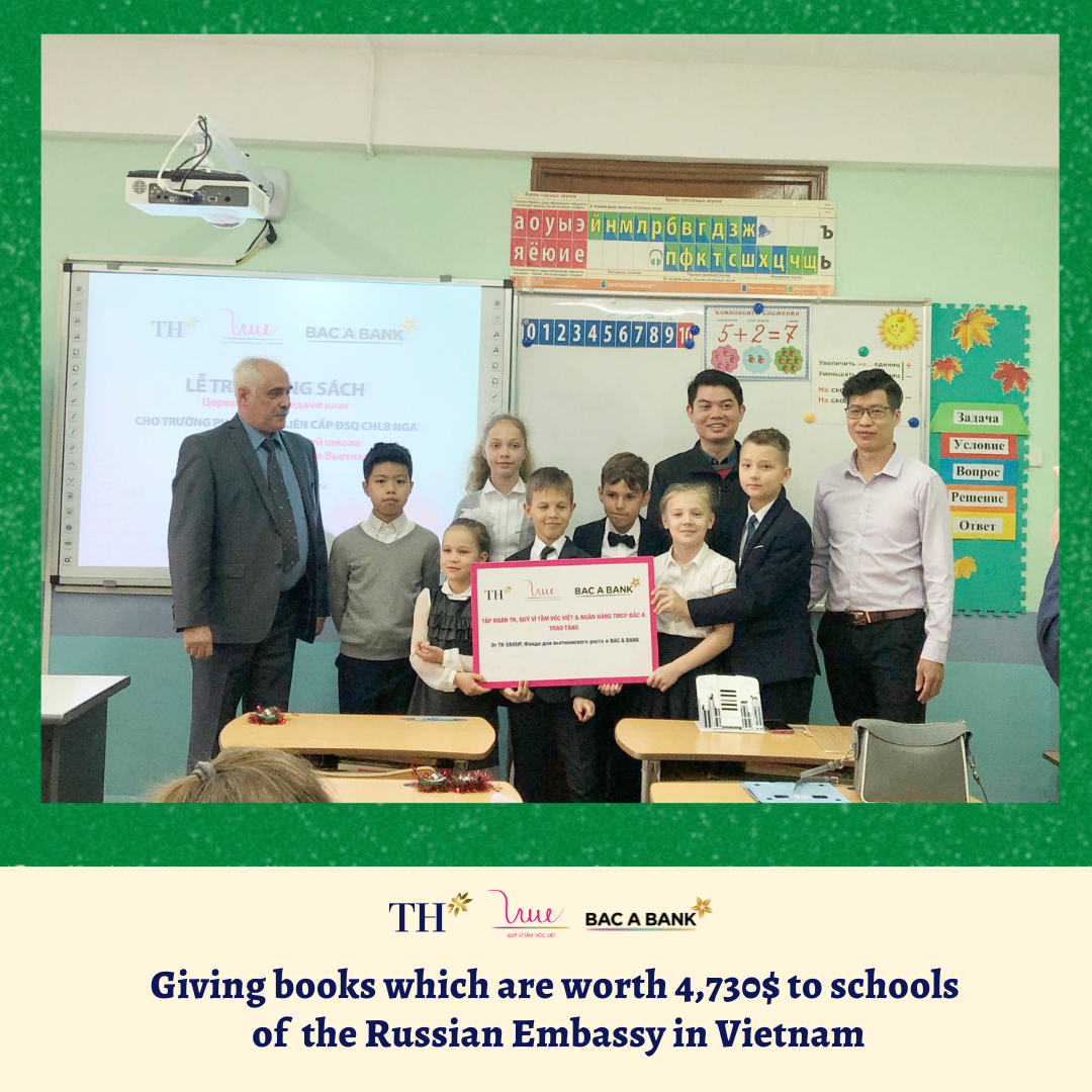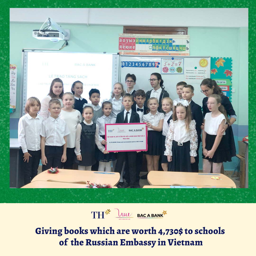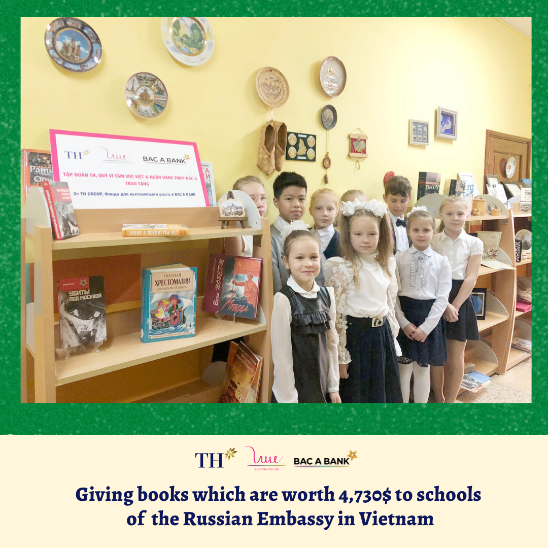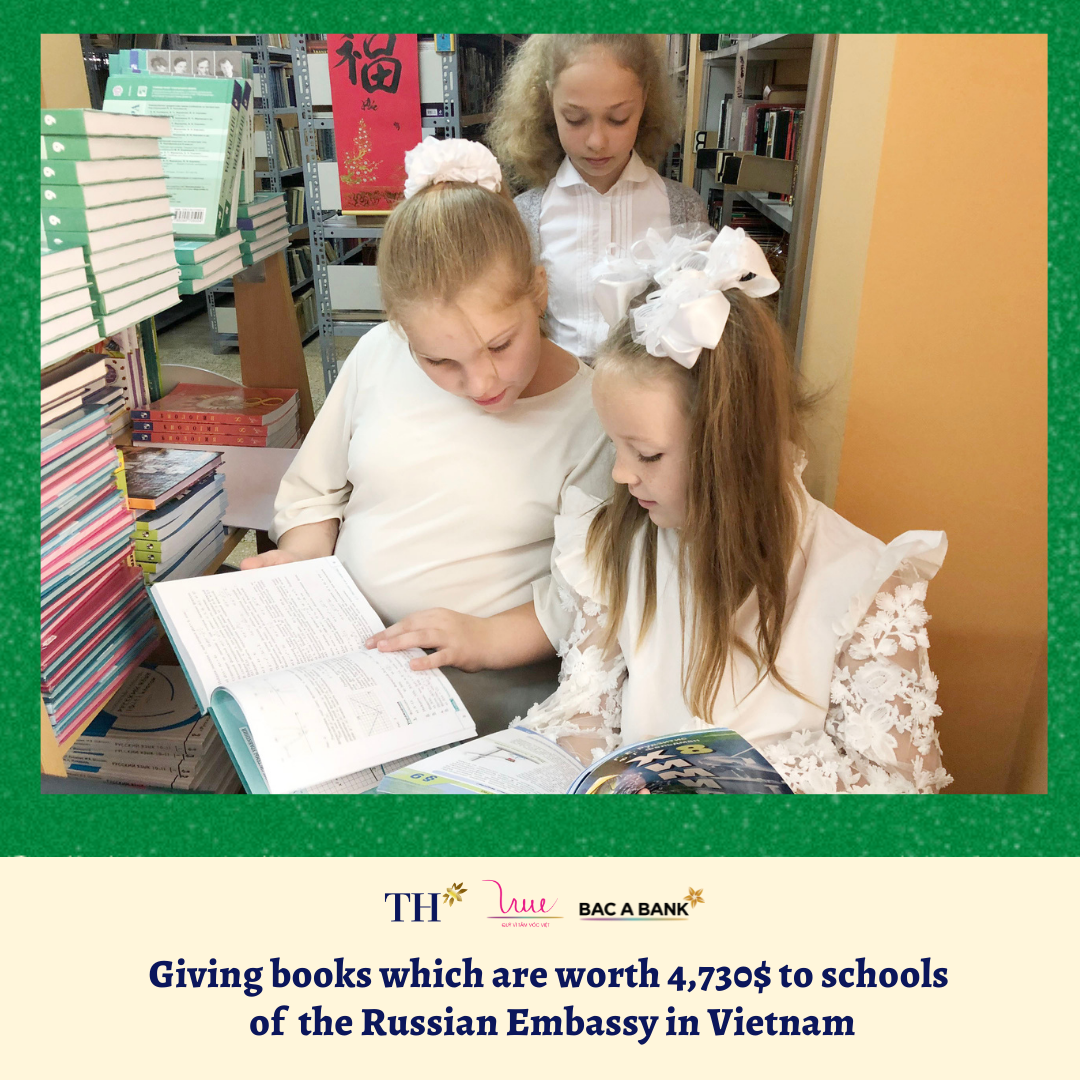 Due to the geographical distance between Russia and Vietnam, the addition of new books to serve teaching and learning at schools is difficult. Therefore, because of the proposal of the school parent association, TH Group and Bac A Bank through VSF decided to finance the school to buy books from Russia and transfer them back to Vietnam.