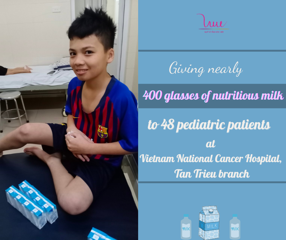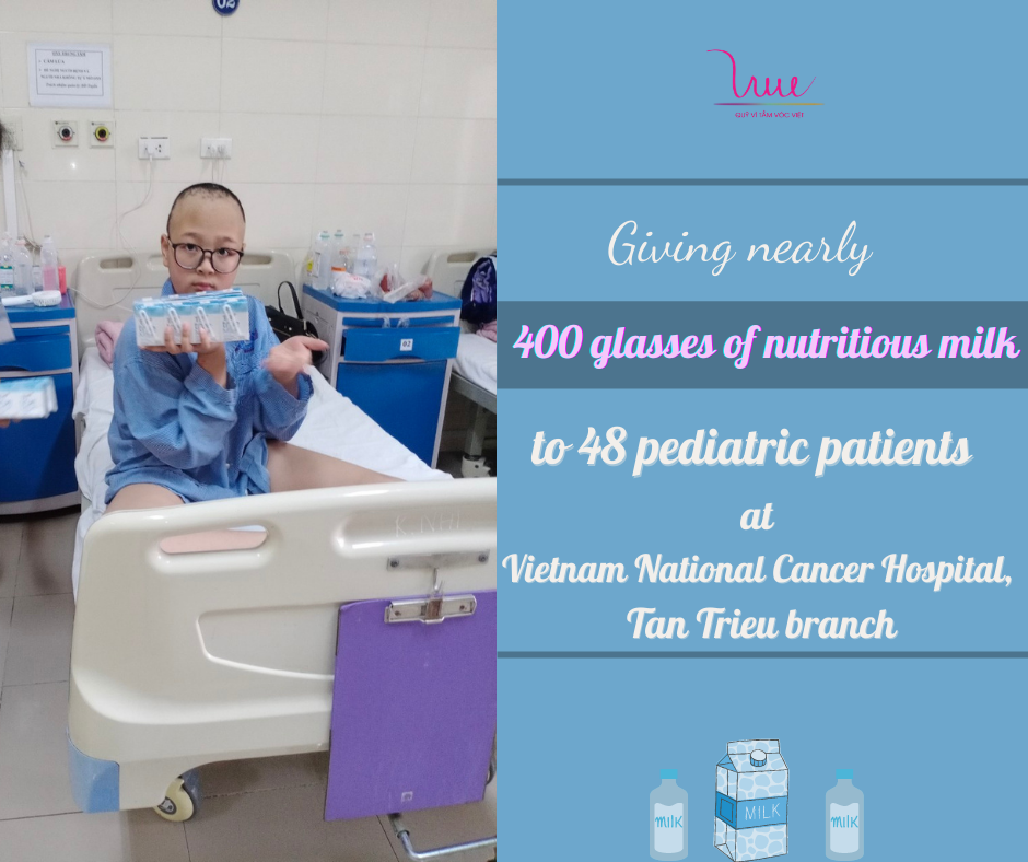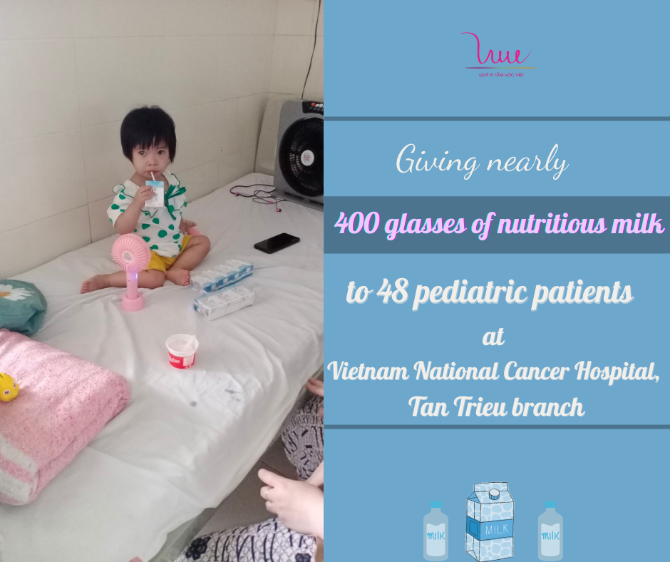 During last weekend trip, For Vietnamese Stature Foundation (VSF) gave nearly 400 glasses of nutritious milk to 48 pediatric patients at Vietnam National Cancer Hospital, Tan Trieu branch.
