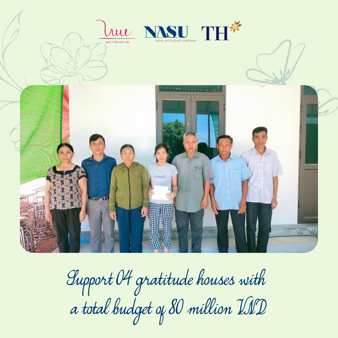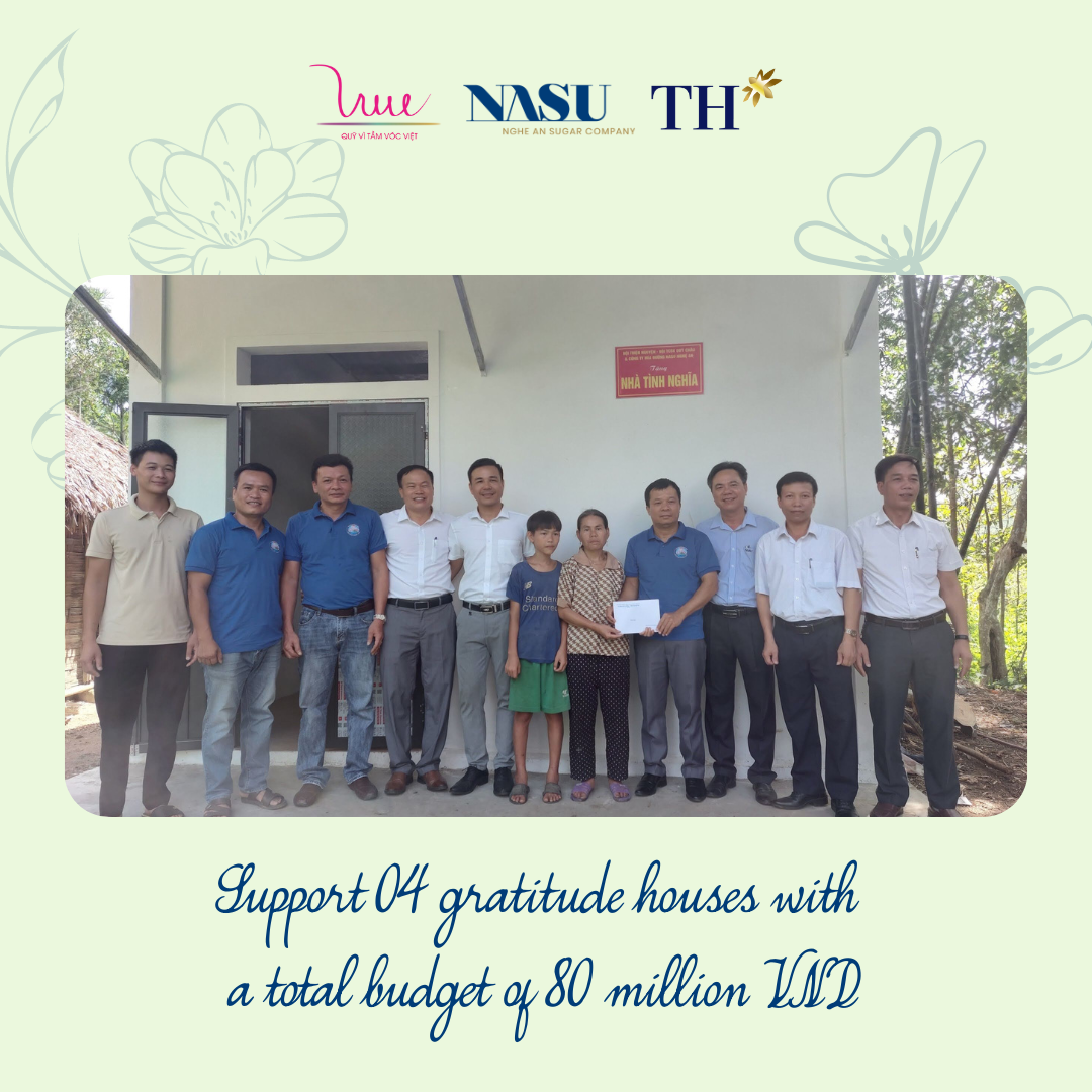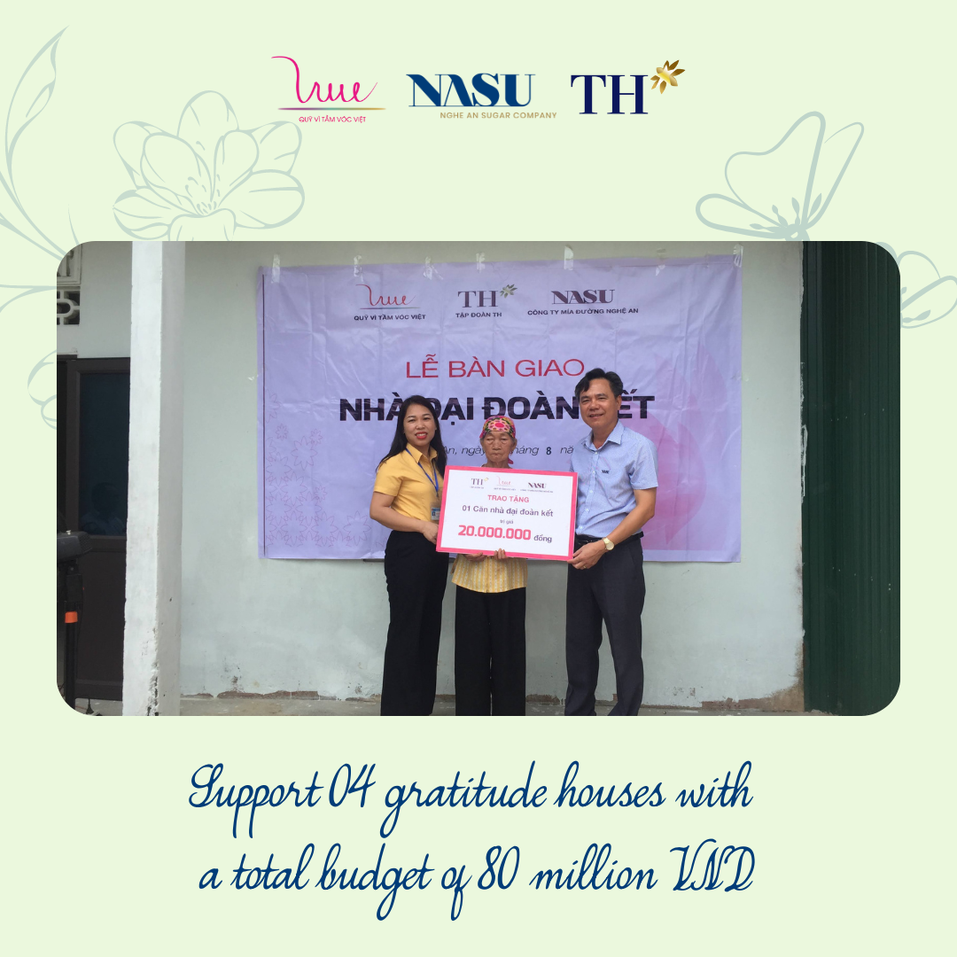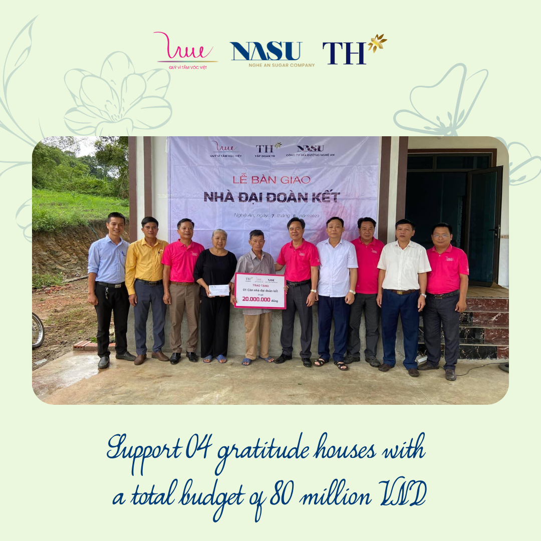From July 14th to August 7th, 2023, For Vietnamese Stature Foundation (VSF), Nghe An Sugar Company (NASU), and TH Group, in collaboration with Fatherland Front Central Committee of Nghia Dan, Quy Hop, and Quy Chau districts, organized a ceremony to hand over 04 houses to 04 underprivileged families.