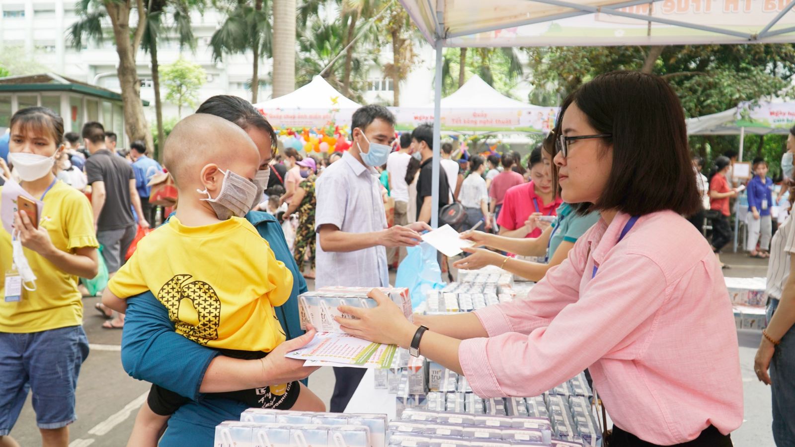 This morning, May 28, For Vietnamese Stature Foundation with four volunteers presented more than 7,000 cups of nutritious milk to 1,800 children currently being treated at the Vietnam National Children's Hospital. The activity took place within the framework of the program "Children’s Festival" organized by the hospital to bring an early Children's Day to children.