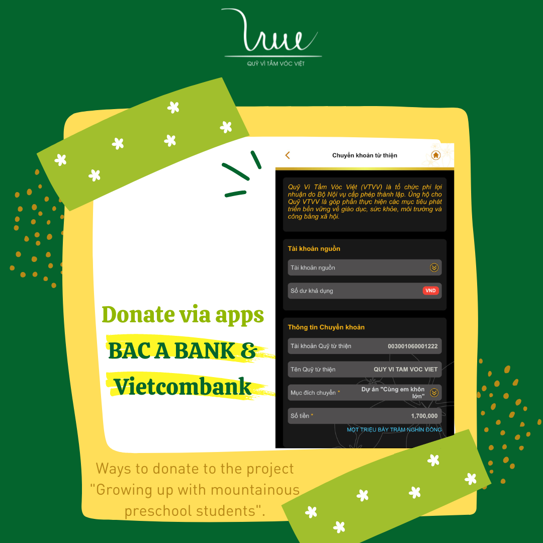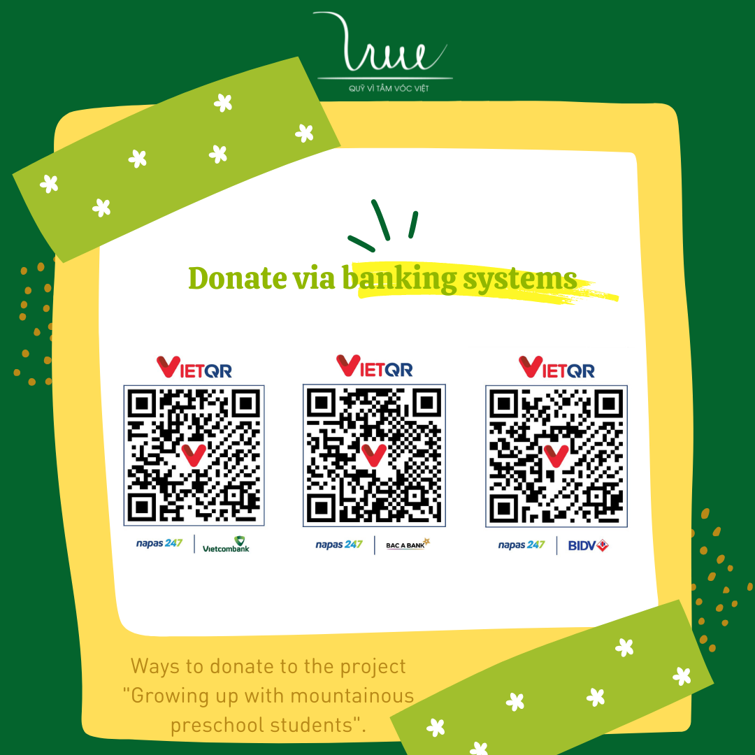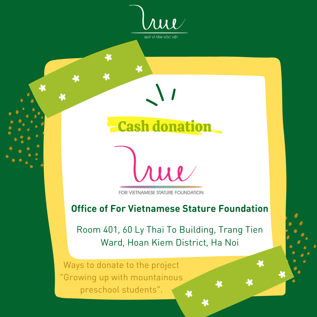 Any amount of donation will be appreciated and help contribute to bringing change to the children in the highlands. Let's join hands with us in the program "Growing up with mountainous preschool students" - Help highland students happy and healthy for their journey to knowledge!