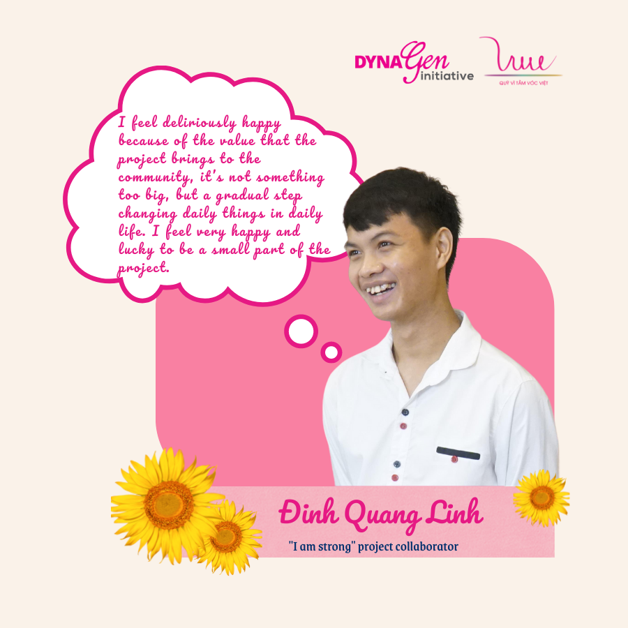 For Dinh Quang Linh (Hanoi University of Industry), "I am strong" project is an opportunity to make Linh more confident and strong: "At first, I did not have the necessary skills, after participating in the project, I had a professional working attitude, be punctual, carefully prepared for activities, focused on taking minutes. This is possible thanks to the project’s members, who always care and help me realize the importance of gender equality, teach me to listen, observe, empathize and love. I feel deliriously happy because of the value that the project brings to the community, it’s not something too big, but a gradual step changing daily things in daily life. I feel very happy and lucky to be a small part of the project. This leaves an imprint on my student life.