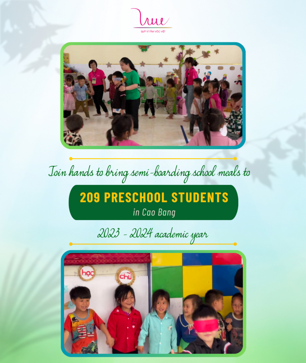 For Vietnamese Stature Foundation (VSF) officially launch our fundraising campaign for 355,300,000 VND to provide free semi boarding meals for 209 preschool students in Bao Lam district, Cao Bang province for the whole 2023-2024 academic year.