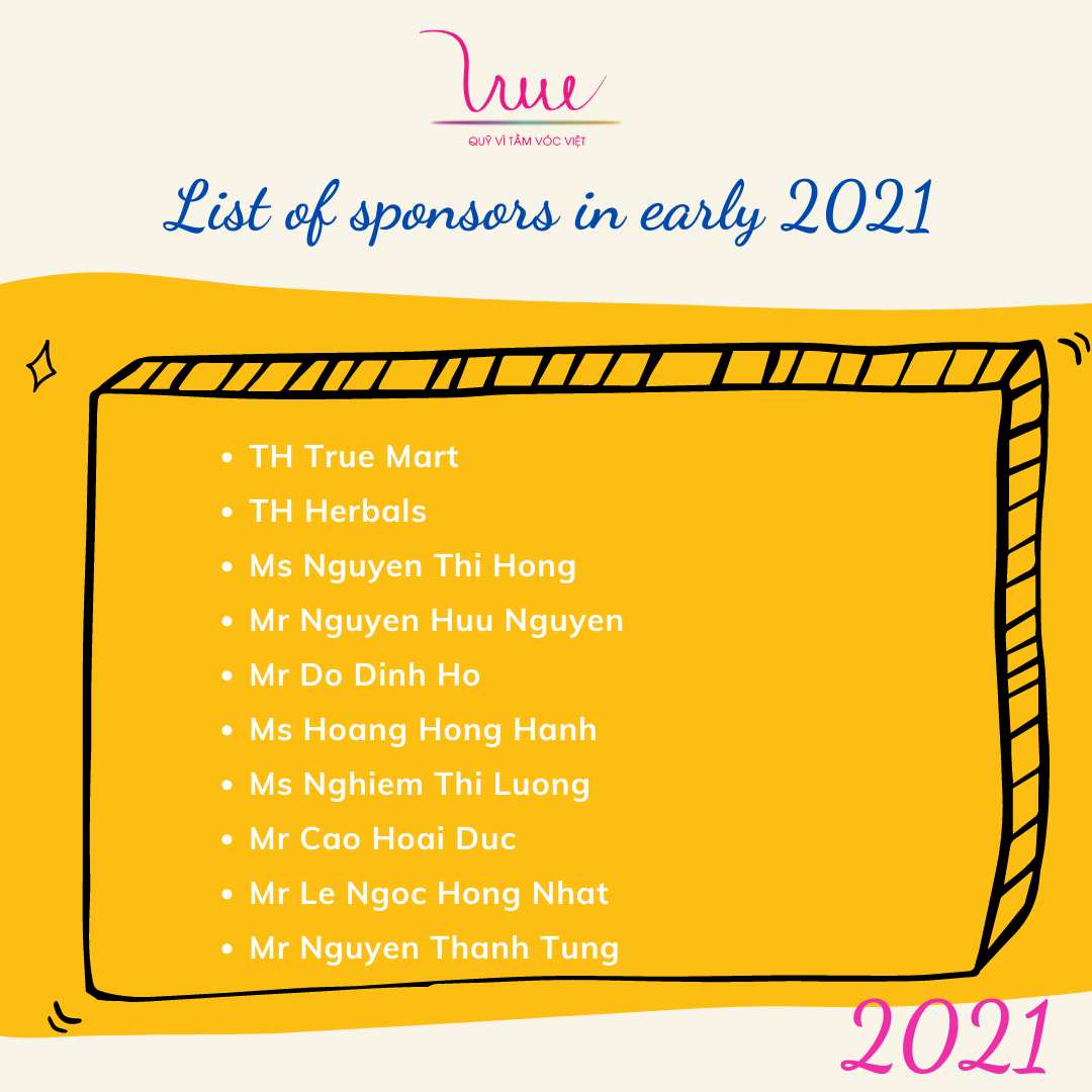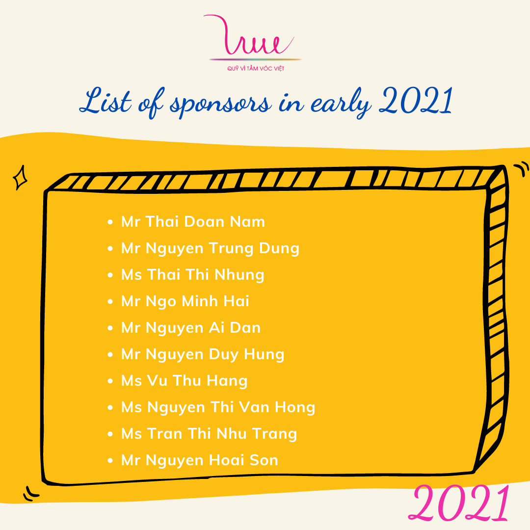 We would like to sincerely thank sponsors for their support over the years. This is the motivation for us to put more effort into the implementation of projects and programs.