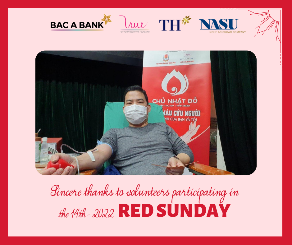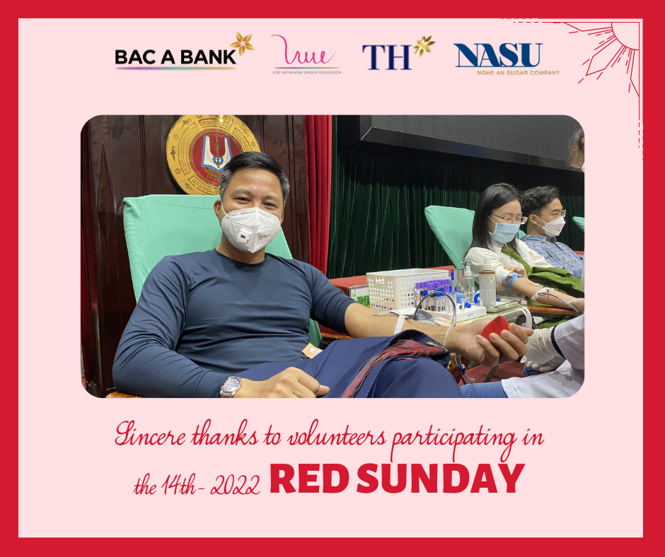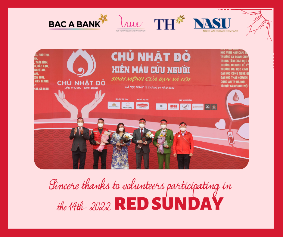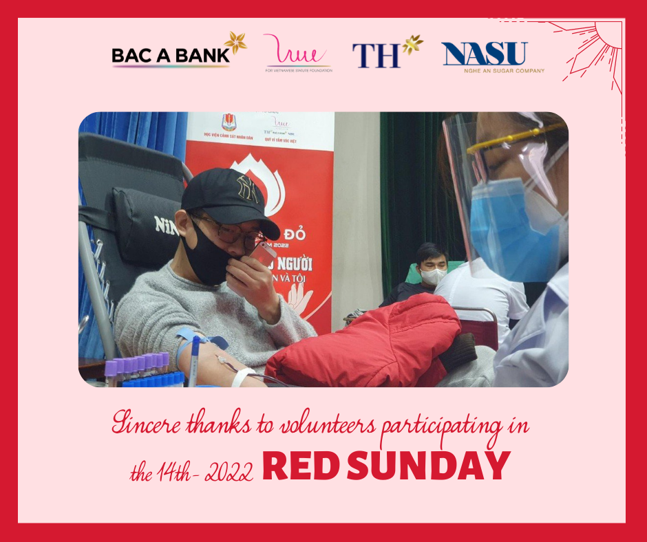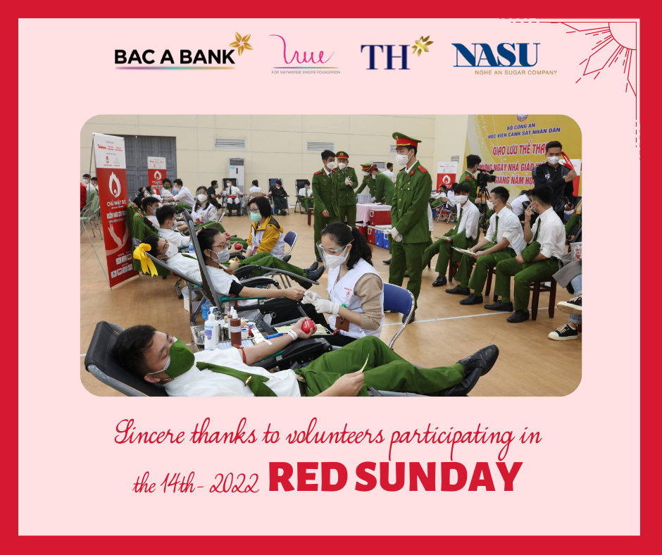 Responding to the 14th “Red Sunday” campaign in 2022, TH Group, BAC A BANK, and Nghe An Sugar Company (NASU), through For Vietnamese Stature Foundation (VSF), sponsored and called on employees to donate blood at the main festival of the 14th Red Sunday 2022 on January 16 at the People's Police Academy Portal.