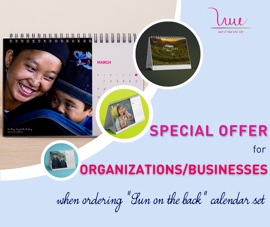 With the order quantity from 200 calendars, organizations/businesses will receive extremely special offers as follows: