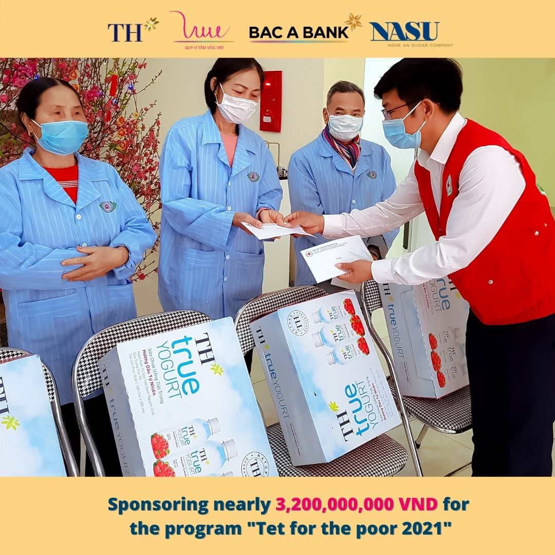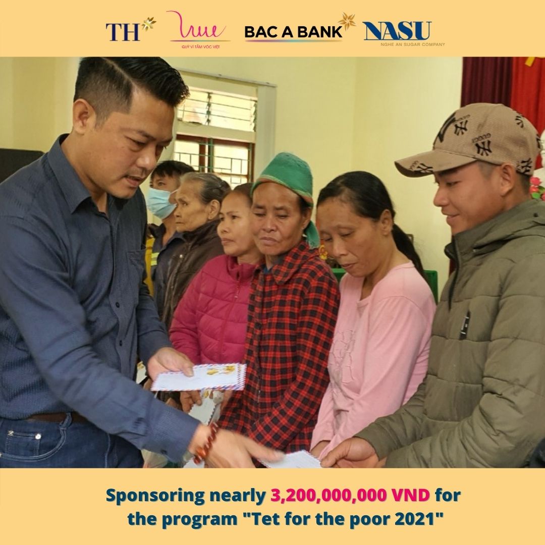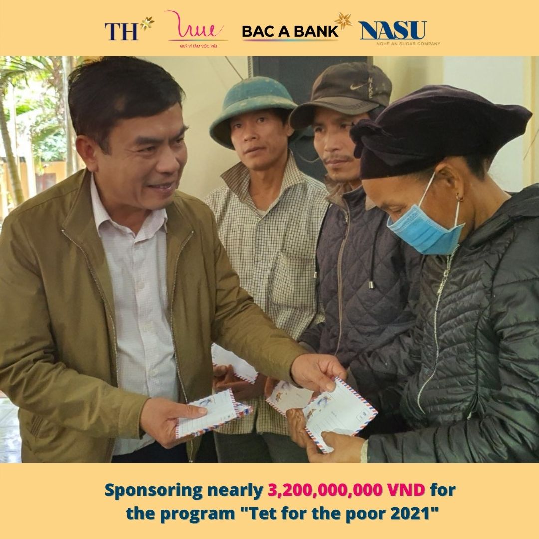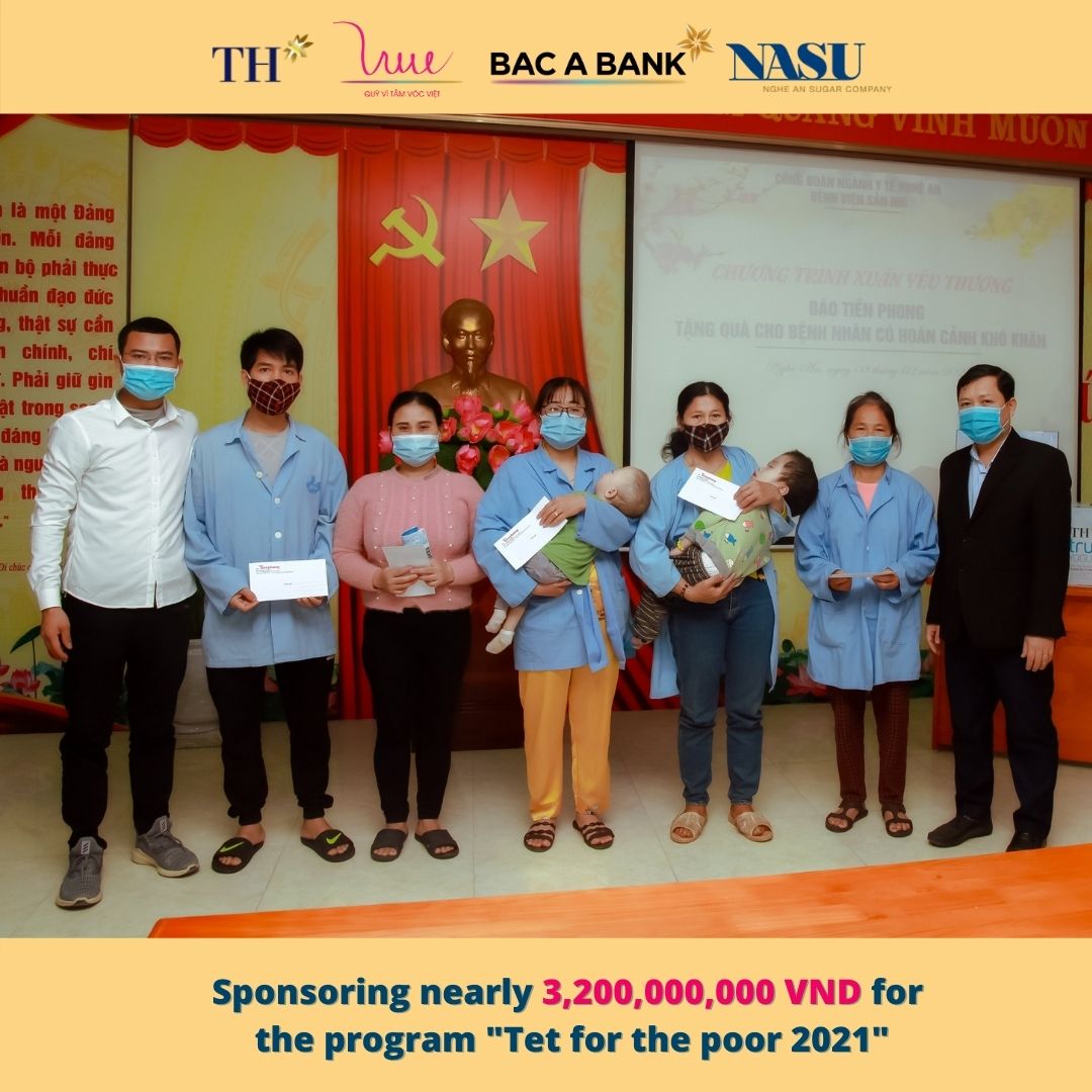 Cherishing the tradition and the deep meaning of the program from previous years, on the occasion of the Lunar New Year 2021, the For Vietnamese Stature Foundation representing TH Group, Bac A Bank and Nghe An Sugar Company supported the program "Tet for the poor 2021" with the aim of helping poor families, families with disabled children, families’ agent orange victims have a cozy and happy New Year 2021.