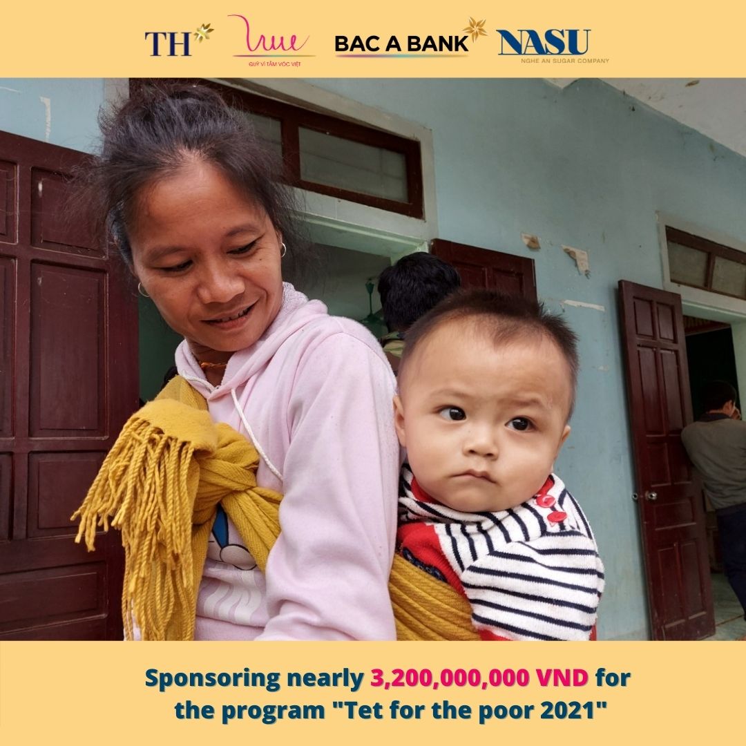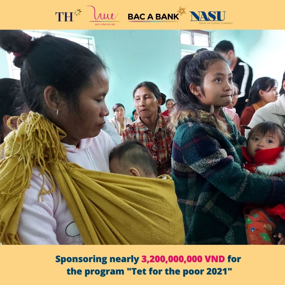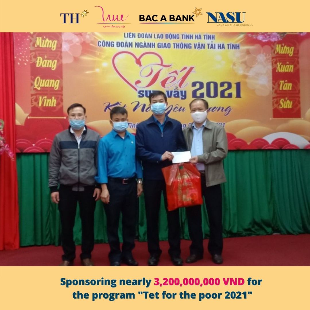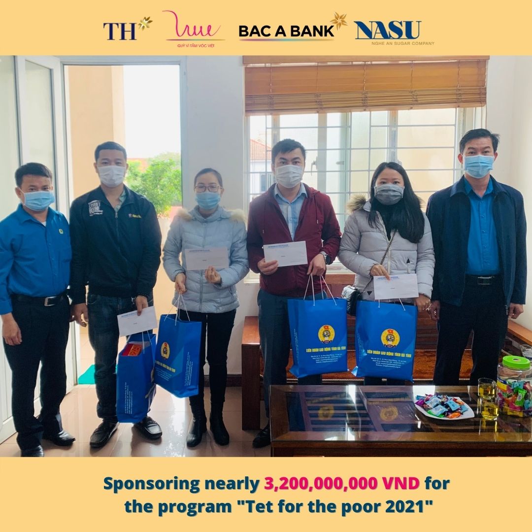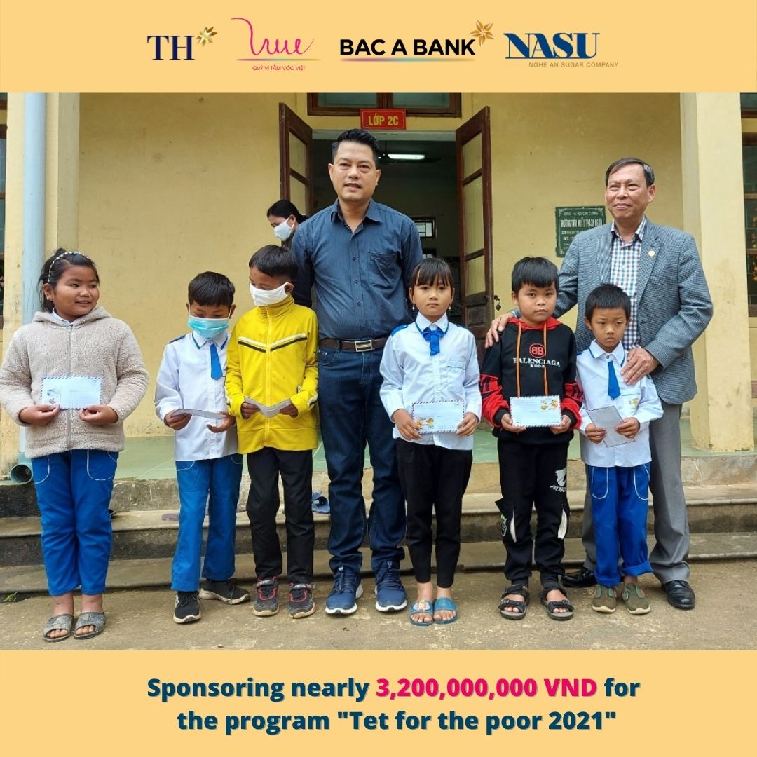 Cherishing the tradition and the deep meaning of the program from previous years, on the occasion of the Lunar New Year 2021, the For Vietnamese Stature Foundation representing TH Group, Bac A Bank and Nghe An Sugar Company supported the program "Tet for the poor 2021" with the aim of helping poor families, families with disabled children, families’ agent orange victims have a cozy and happy New Year 2021.