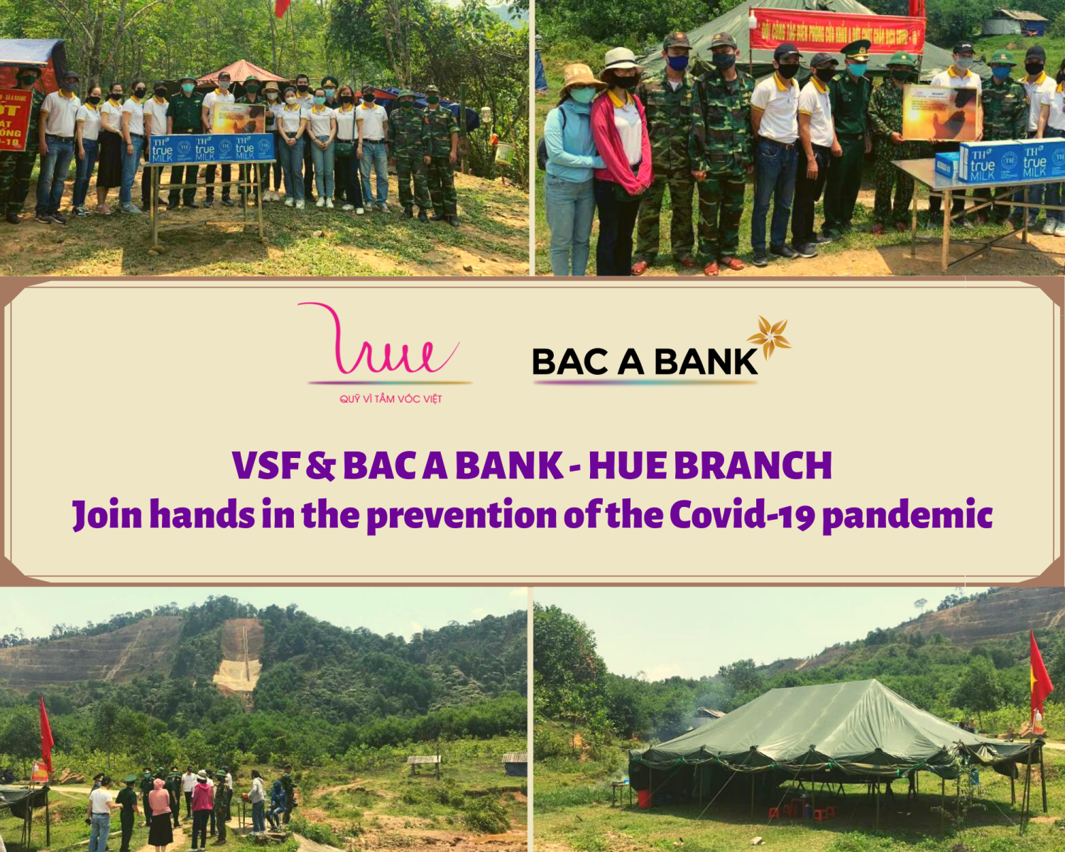 On April 21st, 2020, on behalf of For Vietnamese Stature Foundation (VSF) and BAC A BANK, officials from BAC A BANK - Hue branch visited and presented 1920 glasses of fresh milk to the soldiers, border guards of A Dot Border Station and Huong Nguyen - A Roang Border Station, A Luoi District, Thua Thien Hue Province.