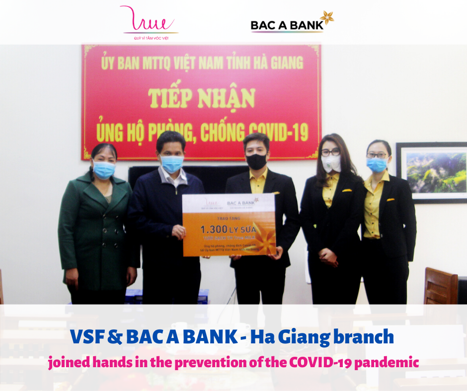- Delivering 1,300 glasses of fresh milk to the Vietnam Fatherland Front Committee of Ha Giang province to support the prevention and control of Covid-19 pandemic in the province; the fund mobilized from BAC A BANK - Ha Giang branch.