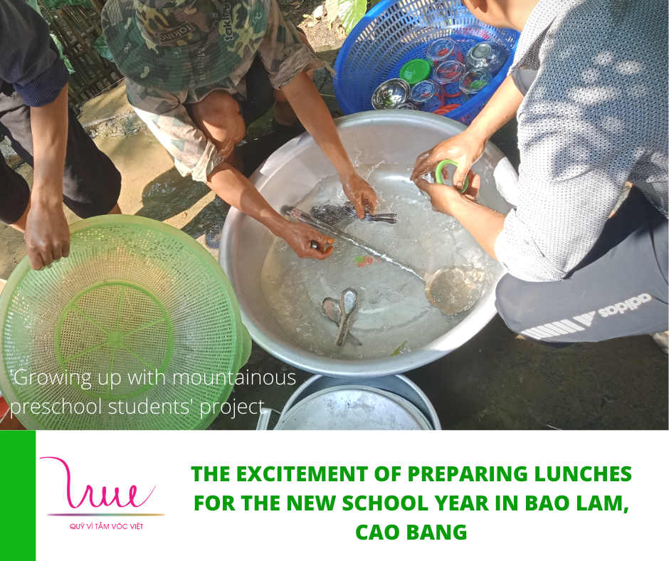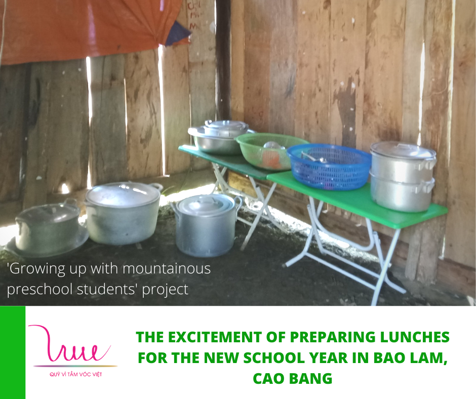 Before the first day of the school year, teachers and parents altogether have prepared the facilities for a new school year to start. Schools, kitchens are cleaned and sanitary, cooking utensils are also carefully washed to prepare for lunches. Na O and Khau De school sites with more than 50 students will be financially assisted by the Department of Education and Training of Bao Lam district with the cost of hiring cooking staff. For the remaining three school sites, parents will make contributions to hire the cook. Lunches will be implemented at the very first day of the new school year.