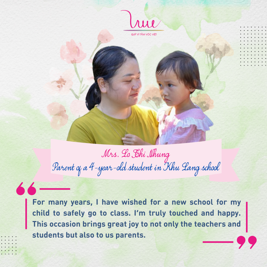"For many years, I have wished for a new school for my child to safely go to class. I’m truly touched and happy. This occasion brings great joy to not only the teachers and students but also to us parents. On behalf of the student’s parents, I sincerely thank VSF and our sponsors for this meaningful project."
