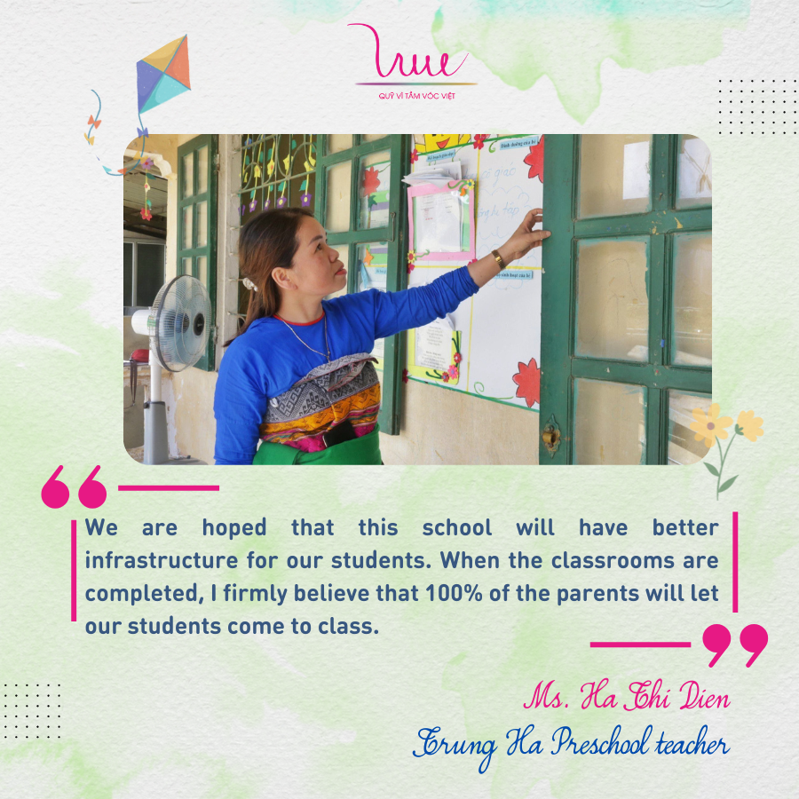 Since the day we were informed that Khu Lang School would be rebuilt, we have been eagerly looking forward to it. Before the groundbreaking ceremony, I couldn't even sleep and couldn’t believe it was true. When the classrooms are completed, I firmly believe that 100% of the parents will let our students come to class,” shared Ms. Ha Thi Dien, Trung Ha Preschool teacher, at the groundbreaking ceremony of the Khu Lang teaching location.