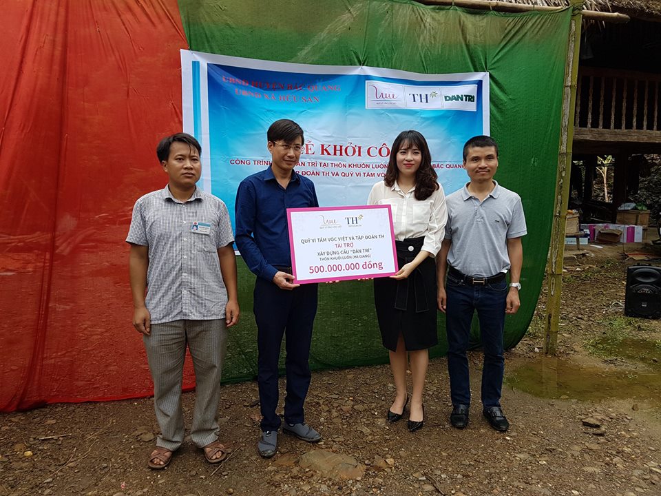 Thanks to the connection of Dan Tri newspaper, VSF and TH Group sponsored 500 million VND to build a new strong bridge as a replacement of the temporary one, which hopefully improves traffic across river and help locals and children settle down here.