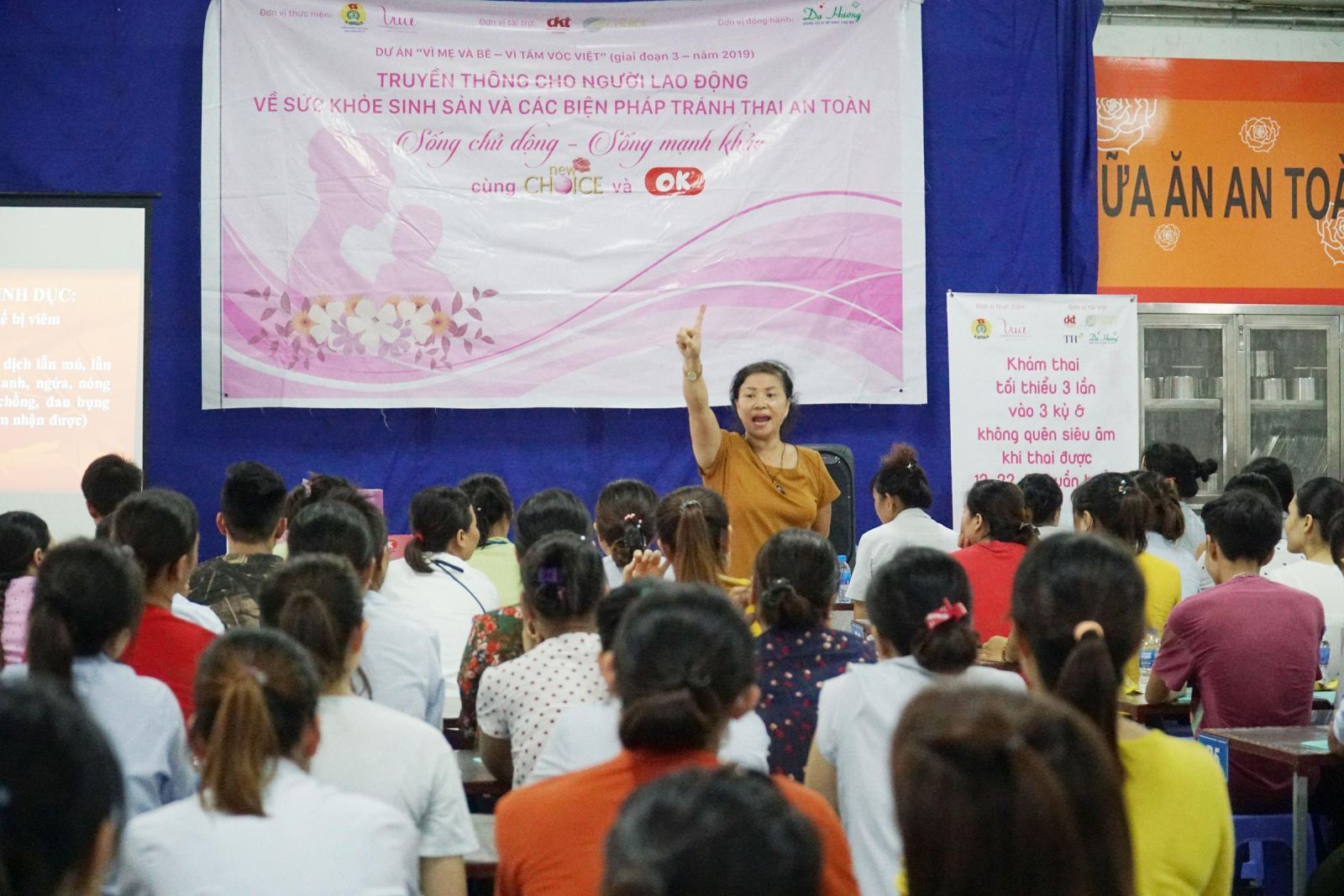 In 08/2019, the project“For Mother and Baby – For Vietnamese Stature” officially completed the stage 3. 22 companies from three industrial zones in Vinh Phuc participated fully in all of the activities including: (i) training provide information for trade union and health workers (ii) communicating with workers about nutrition, reproductive health care, metal health (iii) mobile health test (iv) marketing condom & oral contraceptives directly at the factory (v) knowledge contest. There are 4.260 beneficiaries more, increase the total of beneficiaries through three-stage to 9.660 people.