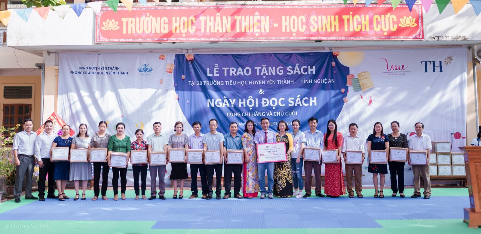 In 09/2019, VSF coordinated with Yen Thanh People’s Committee and the compassionate bookcase, with sponsorship and participation of 60 volunteers from TH Group, give 130 bookshelves to 20 primary schools in Yen Thanh province, Nghe An. On this occasion, 650 students at Hop Thanh primary school, Nghe An participated in “Reading day with Hang and Cuoi”. The program with 20 activities ranging from topics related to books and folk games created a meaningful playground for children on the occasion of mid-autumn.